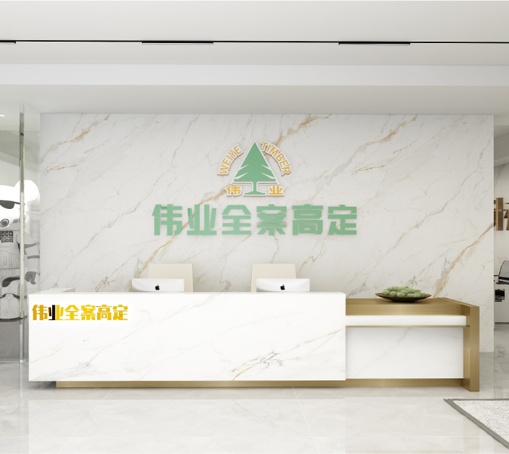 展廳類型:專賣店展廳地址:河北正定展廳產品:偉業ENF板材/偉業全案高定 前臺前臺是巖紋背景墻+綠色“偉業全案高定”logo,給人強烈的視覺沖擊力,在方寸之間,...