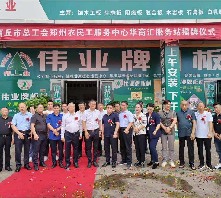 近日,商丘市總工會鄭州農民工服務中心華商匯服務站掛牌儀式在偉業牌ENF板材(河南配貨中心)隆重舉行,此次揭牌儀式正式拉開了服務商丘籍在鄭農民工工作的序幕。 在公...