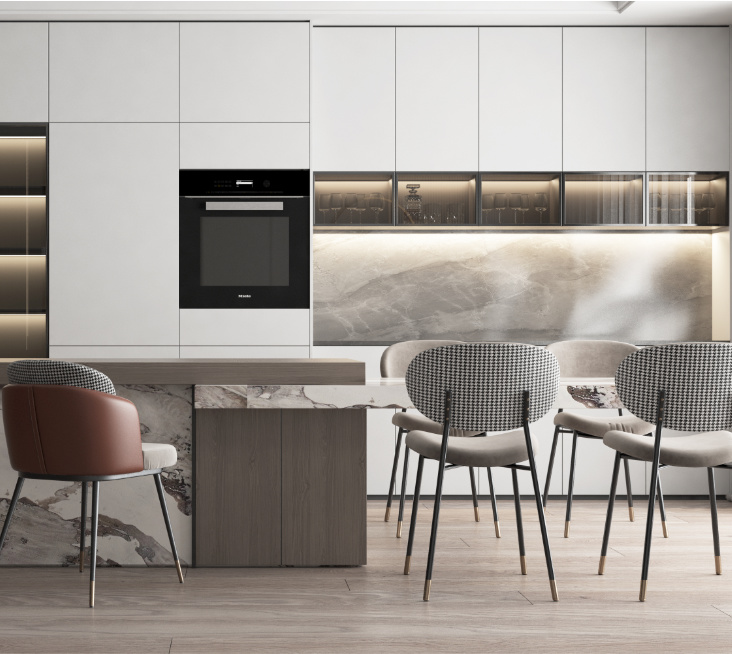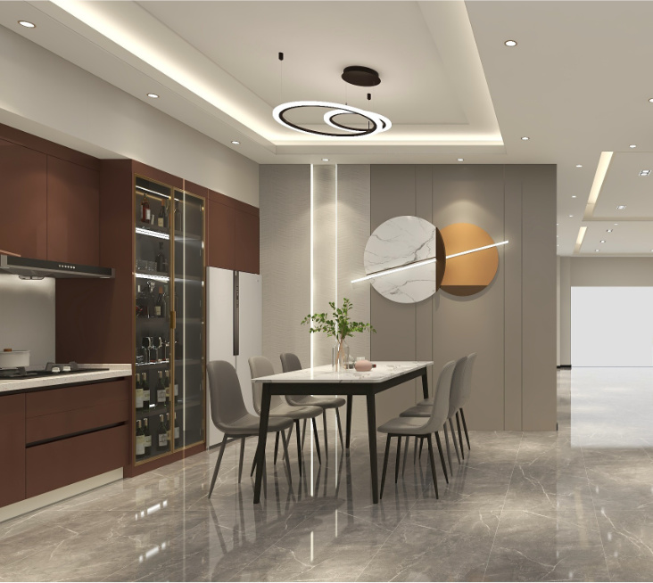 地點:山西太原功能:偉業全案高定 餐廳區域一字型櫥柜,縱向劃分“洗-切-炒”操作動線,引入潮流的“餐桌+島臺”設計,聯合條狀吊燈,合力打造輕奢的浪漫氛圍,高效的...