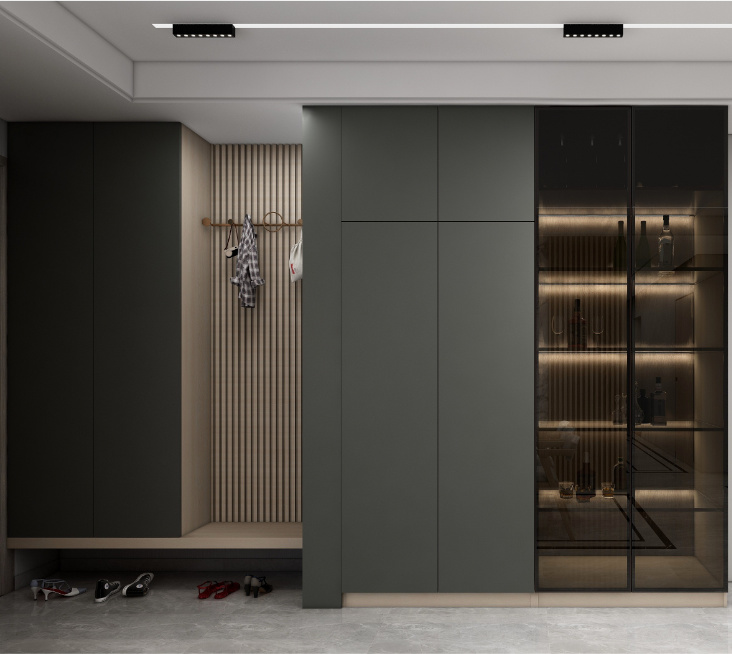玄關空間設計圍繞「進」「出」兩個動作傳遞出不一樣的「家之初印象」是凌亂的鞋子?還是有序的收納?跟著偉業ENF生態板設計,被贊爆啦~ 1、輕奢風從室外轉向室內,玄...