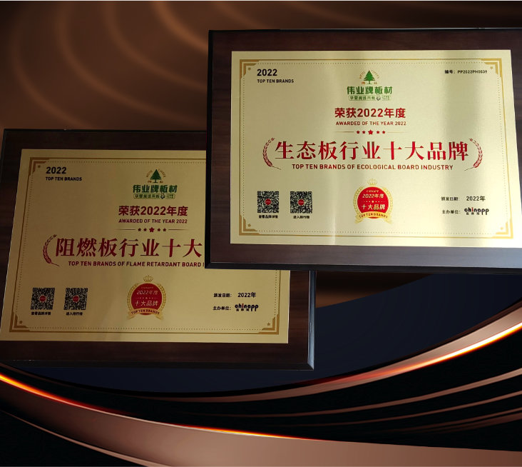 偉業榮耀又獲2項年度大獎生態板行業十大品牌阻燃板行業十大品牌 近日,由品牌網主辦的“2022年度十大品牌”評選活動正式發榜,偉業牌板材一舉斬獲“生態板行業十大品...